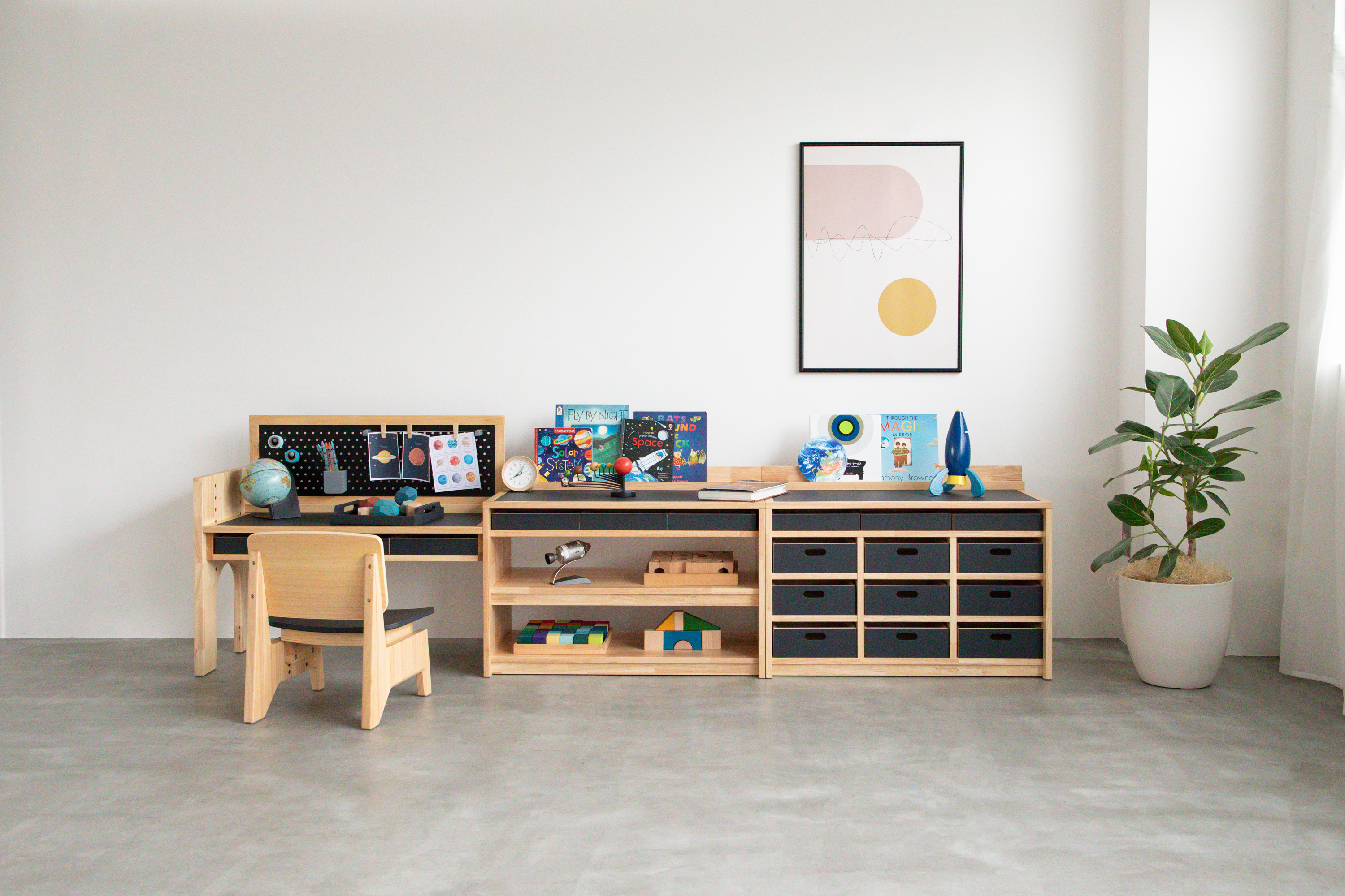 MINORINOは、国際モンテッソーリ教師の監修のもと、子どもの自立心を引き出し、思考力・表現力を育むことを目的に設計した幼児向けの知育家具です。子ども向けでありながら、幼児期の親子が最も長く過ごすリビングでこそ使っていただきたいとの思いから、大人のインテリアにも自然になじむデザインにこだわっています。第17回キッズデザイン賞および iF Design Award 2024 など、国内外のデザインアワードを受賞。