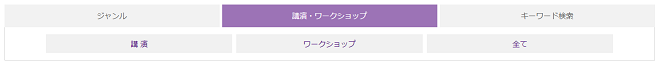 検索したい実績(講演、ワークショップ、全て)をクリックしてください。